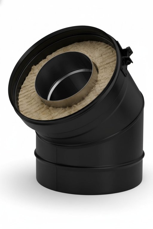 Для дополнительной термальной изоляции используется базальтовая вата датского производителя Rockwool. Она образует плотную прослойку толщиной 50 мм между внешней и внутренней трубами, способствуя соблюдению даже самых строгих норм пожарной безопасности.