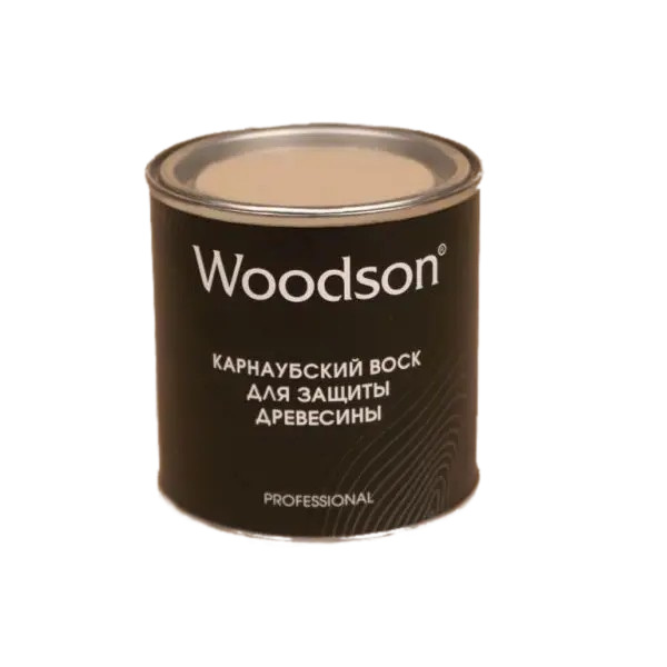Карнаубский воск для защиты древесины Woodson, 0,25л | Карнаубский воск для защиты древесины Woodson - универсальное финишное покрытие на основе карнаубского воска создаёт прочное глянцевое покрытие, увеличивающее износостойкость деревянных поверхностей. Состав связывает эфирные и минеральные масла, обеспечивая комплексную защиту от влаги, механических повреждений и биологических угроз.
