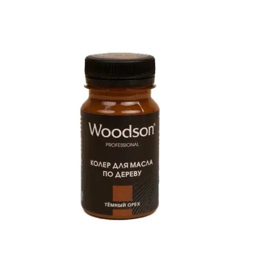 Колер для масла по дереву Woodson, тёмный орех | Колер для масла по дереву Woodson - концентрированный краситель для колеровки натуральных масел Woodson. Придаёт древесине глубокий оттенок цвета тёмный орех, подчёркивая естественную текстуру. Натуральные пигменты обеспечивают равномерное прокрашивание без скрытия рисунка дерева.