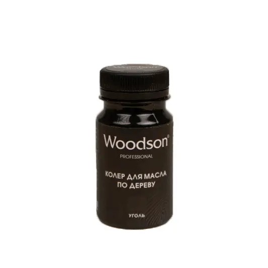 Колер для масла по дереву Woodson, уголь | Колер для масла по дереву Woodson - концентрированный краситель для колеровки натуральных масел Woodson. Придаёт древесине глубокий угольный оттенок, подчёркивая естественную текстуру. Натуральные пигменты обеспечивают равномерное прокрашивание без скрытия рисунка дерева.